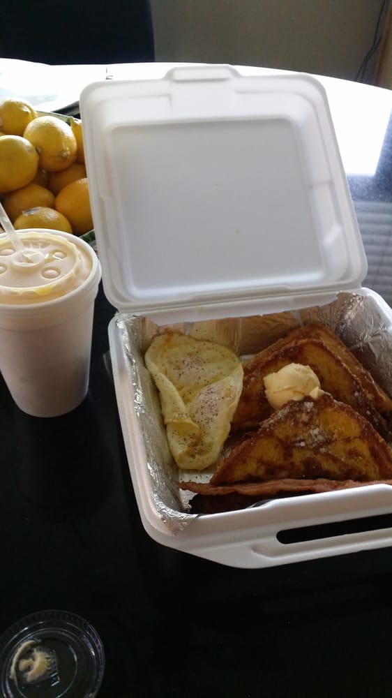 Author: Ana ThompkinsHad the steak plate which included toasted bread, fries and onion rings. Can't figure out the thinking on that one. Also came with soup which was a nice sized bowl. Everything was well cooked and arrived hot. The steak was a strange gray color, but that's what our meat in this country has become. My only problem with this place was the woman who took my order. No friendliness or smile, never told me how I'd know my order was ready, didn't give me my soup or drink (which was only water) until I went up and asked for it. The other employees were friendly and smiled.